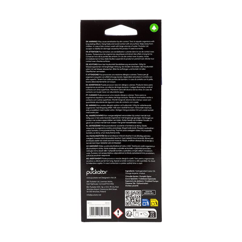 https://www.puckator.fr/airf175-desodorisant-a-suspendre-senteur-citrouille-epicee-chat-effrayant-citrouille.htmlAIRF175Désodorisant à Suspendre senteur Citrouille Epicée - Chat Effrayant & Citrouille<p>Désodorisant à Suspendre senteur Citrouille Epicée - Chat Effrayant & Citrouille</p><p><strong>Fiche Technique:</strong></p><ul><li><strong>Composition:</strong> Carton, Polypropylene, Elastique, Papier Absorbant, et Parfum</li><li><strong>Parfum:</strong> Citrouille Epicée</li><li><strong> Information Sécurité:</strong> Gardez hors de portée des enfants. Evitez de poser sur une surface, le parfum peut faire des tâches.</li><li><strong>Produits saisonniers/Fêtes:</strong> Halloween</li><li><strong>En savoir plus?</strong> Plus de détails grâce à notre<a href="/advice-centre" target="_blank" title="Puckator FR Guide de l'acheteur"> guide de l'acheteur.</a></li></ul></p>https://www.puckator.fr/media/catalog/product/A/I/AIRF175_001_1759394337.jpg0.55instock0.550.5500Puckator000https://www.puckator.fr/media/catalog/product/A/I/AIRF175_001_1759394337.jpg158761660117193194091941019411/Désodorisants à Suspendre/Halloween2025-02-14T06:50:44+0000