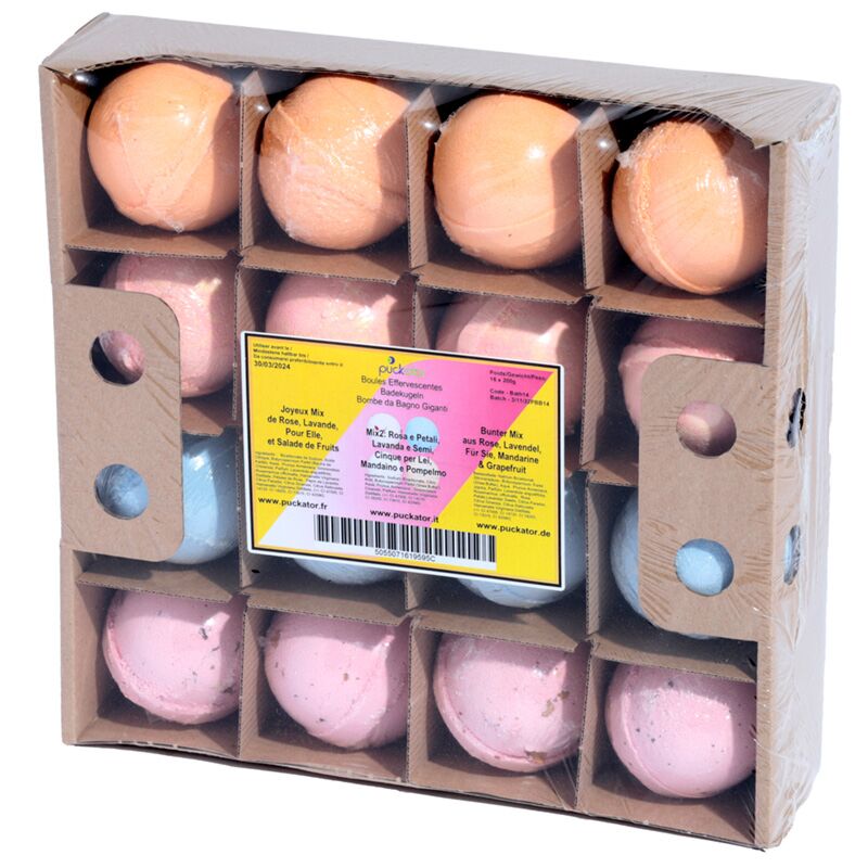 https://www.puckator.fr/bath14-balle-effervescente-pour-le-bain-rose-lavande-pr-elle-salade-de-fruits-vendue-par-boite-de-16.htmlBATH14Balle effervescente pour le bain, Rose, Lavande, Pr elle, Salade de fruits VENDUE PAR Boîte de 16.<p>Balle effervescente pour le bain, Rose, Lavande, Pr elle, Salade de fruits VENDUE PAR Boîte de 16.</p><p><strong>Fiche Technique:</strong></p><ul><li><strong>Composition:</strong> Sels naturels et huiles essentielles</li><li><strong>Ingrédients Rose:</strong> Sodium Bicarbonate, Acide Citrique, Aqua, Butyrospermum Parkii, Parfum, Rosa centifolia, CI 16255.</li><li><strong>Allergènes:</strong> Aucun.</li><li><strong>Ingrédients Lavande:</strong> Sodium Bicarbonate, Acide Citrique, Aqua, Butyrospermum Parkii, huile Lavandula Angustifolia, Lavandula Vera, Linalool,CI 42090, CI 45430.</li><li><strong>Allergènes: </strong>Linalool.</li><li><strong>Ingrédients For Her:</strong> Sodium Bicarbonate, Acide Citrique, Aqua, Butyrospermum Parkii, Parfum, Alcool Benzyl, Linalool, Alpha-Isomethyl Ionone, CI 16255, CI 47005. </li><li><strong>Allergènes:</strong> Linalool, Alpha-Isomethyl Ionone.</li><li><strong>Ingrédients Tutti Frutti:</strong> Sodium Bicarbonate, Acide Citrique, Aqua, Cocos nucifera, Butyrospermum Parkii, Parfum, CI 42090, CI 15985, CI 19140, CI 45430. </li><li><strong>Allergènes:</strong> Aucun.</li><li><strong>Poids bombe de bain:</strong> 200g</li><li><strong>Information produit:</strong> Les balles sont désormais filmées individuellement.</li><li><strong>En savoir plus?</strong> Plus de détails grâce à notre<a href="/advice-centre" target="_blank" title="Puckator FR Guide de l'acheteur"> guide de l'acheteur.</a></li></ul></p>https://www.puckator.fr/media/catalog/product/B/A/BATH14_001_1660124748.jpg1.43instock1.431.4300Puckator000https://www.puckator.fr/media/catalog/product/B/A/BATH14_001_1660124748.jpg1930519303/Bombes de Bain/Produits Beauté Écoresponsables2012-06-01T01:00:00+0000