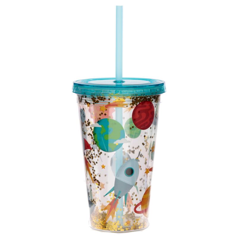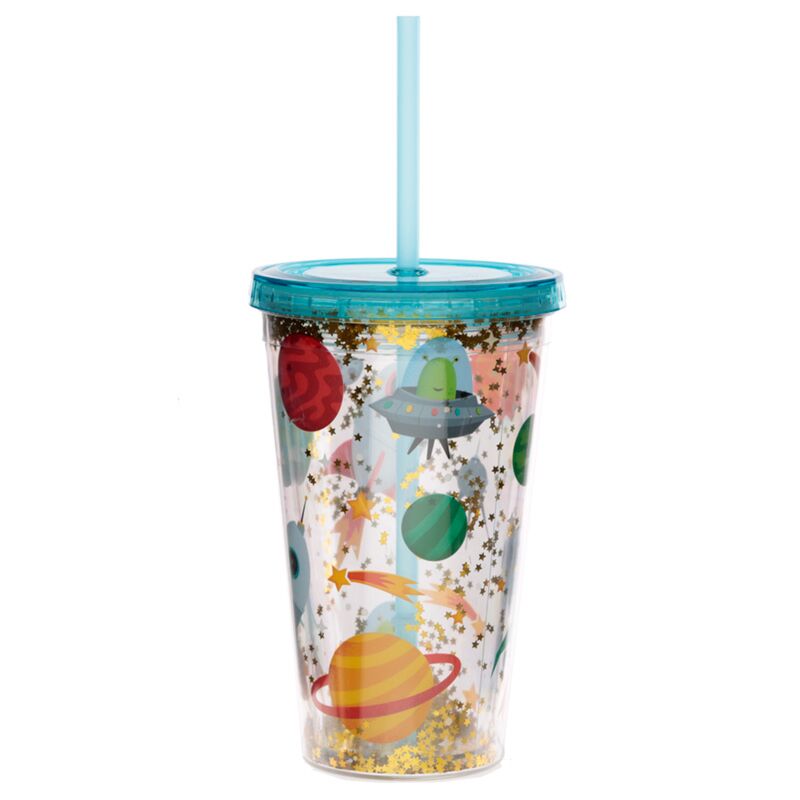Verre PVC Double Paroi 500ml avec Paille & Couvercle Space Cadet - Fusée de l'Espace
