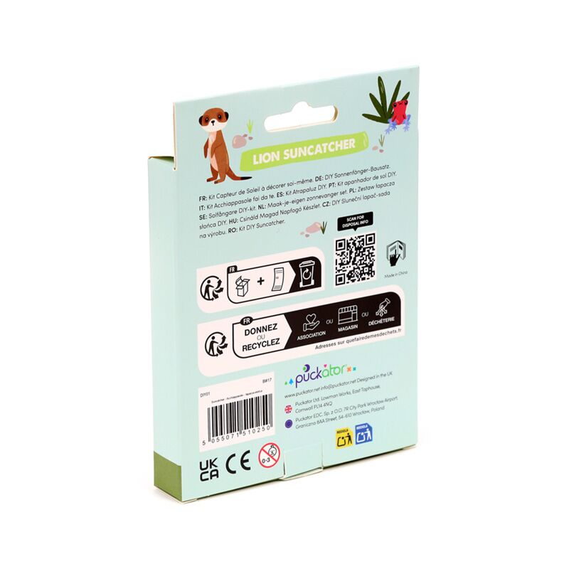https://www.puckator.fr/diy01-capteur-de-soleil-diy-a-peindre-zooniverse-lion.htmlDIY01Capteur de Soleil DIY à peindre - Zooniverse Lion <p>Capteur de Soleil DIY à peindre - Zooniverse Lion </p><p><strong>Fiche Technique:</strong></p><ul><li><strong>Composition:</strong> Polystyrene, Peinture, Polypropylène</li><li><strong>Contient:</strong> Capteur de soleil en plastique, ficelle, pinceau & 3 peintures.</li><li><strong>Label CE/UKCA :</strong> Oui</li><li><strong>Ne convient pas aux enfants de :</strong> 0 - 3 Ans</li><li><strong>Label EN71:</strong> Oui</li><li><strong> Information Produit:</strong> Livré avec mode d'emploi. Laisser sécher une fois peint avant de le suspendre. La supervision d'un adulte est recommandé. Nettoyez immédiatement la peinture sur les autres surfaces pour éviter les tâches.</li><li><strong>En savoir plus?</strong> Plus de détails grâce à notre<a href="/advice-centre" target="_blank" title="Puckator FR Guide de l'acheteur"> guide de l'acheteur.</a></li></ul></p>https://www.puckator.fr/media/catalog/product/D/I/DIY01_001_1754906232.jpg1.55outofstock1.551.5500Puckator000https://www.puckator.fr/media/catalog/product/D/I/DIY01_001_1754906232.jpg/Zoo/Animaux du Zoo Zooniverse/ Jouets éducatifs & Puzzles2024-12-24T06:46:46+0000