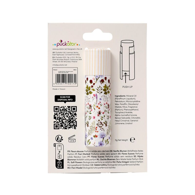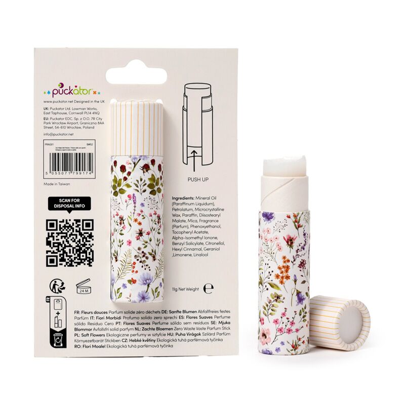 https://www.puckator.fr/frag01-parfum-solide-en-stick-nectar-meadows.htmlFRAG01Parfum solide en stick - Nectar Meadows <p>Parfum solide en stick - Nectar Meadows </p><p><strong>Fiche Technique:</strong></p><ul><li><strong>Composition:</strong> Parfum solide dans un stick en papier et carton </li><li><strong>Parfum:</strong>Fleurs douces</li><li><strong>Ingredients:</strong> La liste complète des ingrédients et la date limite d'utilisation se trouve sur l'emballage.</li><li><strong>Sans Huile de Palme :</strong> Oui</li><li><strong>Sans Gluten :</strong> Oui</li><li><strong>Sans Cruauté :</strong> Oui</li><li><strong>Vegan:</strong> Oui</li><li><strong>Accréditation Eco :</strong> Sans Plastique </li><li><strong> Information de Sécurité:</strong> Ceci n'est pas un jouet ni un aliment.</li><li><strong>CPNP:</strong> TBC</li><li><strong>En savoir plus?</strong> Plus de détails grâce à notre<a href="/advice-centre" target="_blank" title="Puckator FR Guide de l'acheteur"> guide de l'acheteur.</a></li></ul></p><p><img src="{{media url="wysiwyg/Symbols/PLASTICFREE.jpg";}}" alt="Plastic Free Packaging Symbol|Puckator" width="100" height="100"><img src="{{media url="wysiwyg/Symbols/CRUELTYFREE.jpg";}}" alt="Cruelty Free Packaging Symbol|Puckator" width="100" height="100"><img src="{{media url="wysiwyg/Symbols/PALMOILFREE.jpg";}}" alt="Palm Oil Free Packaging Symbol|Puckator" width="100" height="100"><img src="{{media url="wysiwyg/Symbols/VEGAN.jpg";}}" alt="Vegan Packaging Symbol|Puckator" width="100" height="100"></p>https://www.puckator.fr/media/catalog/product/F/R/FRAG01_001_1734609516.jpg2.22instock2.222.2200Puckator000https://www.puckator.fr/media/catalog/product/F/R/FRAG01_001_1734609516.jpg188761887819389/Baumes à lèvres & Crèmes mains/Papillons & Abeilles/Accessoires de Voyage/Nectar Meadows/Baisse de prix2024-05-23T05:48:05+0000