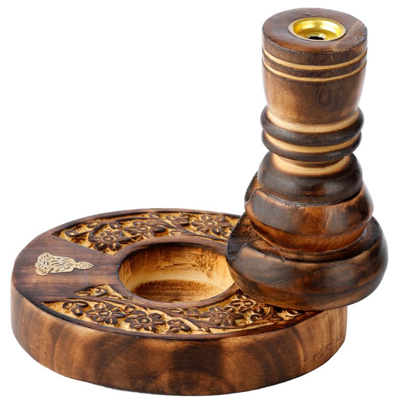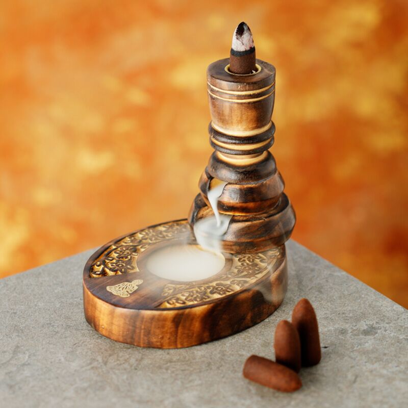 Brûleur d'Encens à Refoulement Reflux Backflow en Bois de Manguier - Jardin de Fleurs