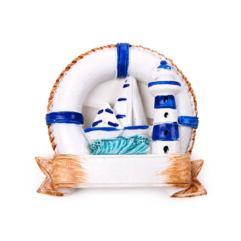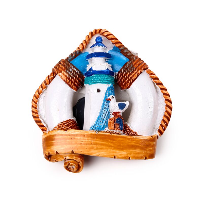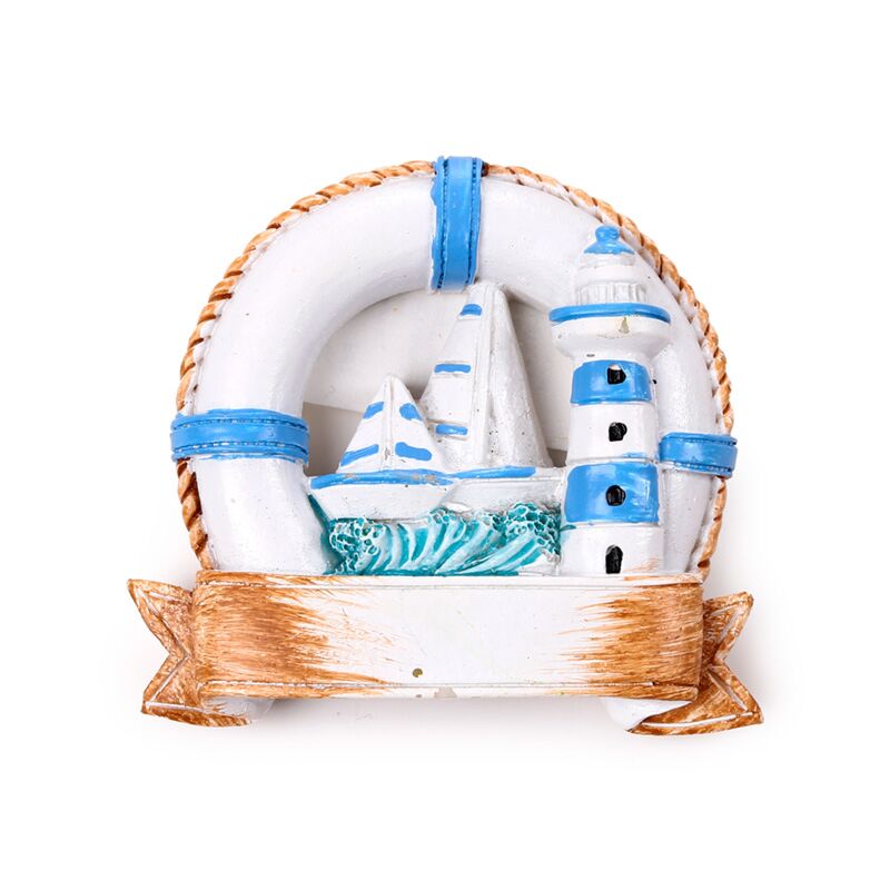 Aimant Souvenir 3D - Bord de Mer Bouée avec Phares et Bateaux