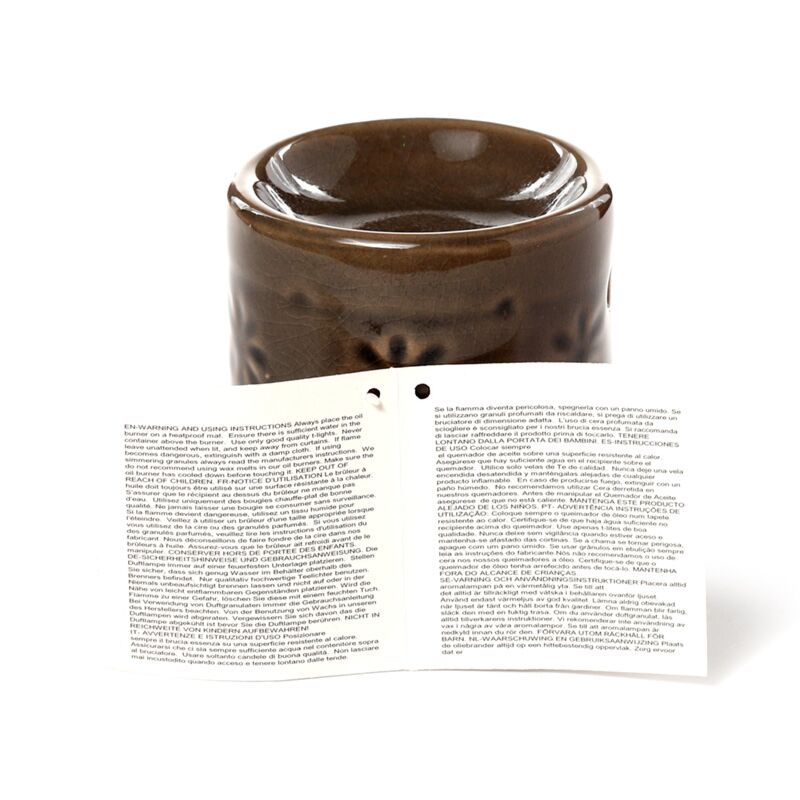 Information(s) de Sécurité: Toujours lire et suivre l'ensemble des instuctions attentivement avant utilisation. Ce produit requiert l'utilisation d'une bougie chauffe-plat de bonne qualité. Attention à ne pas surcharger le bruleur d'huile. Quelques gouttes suffisent.