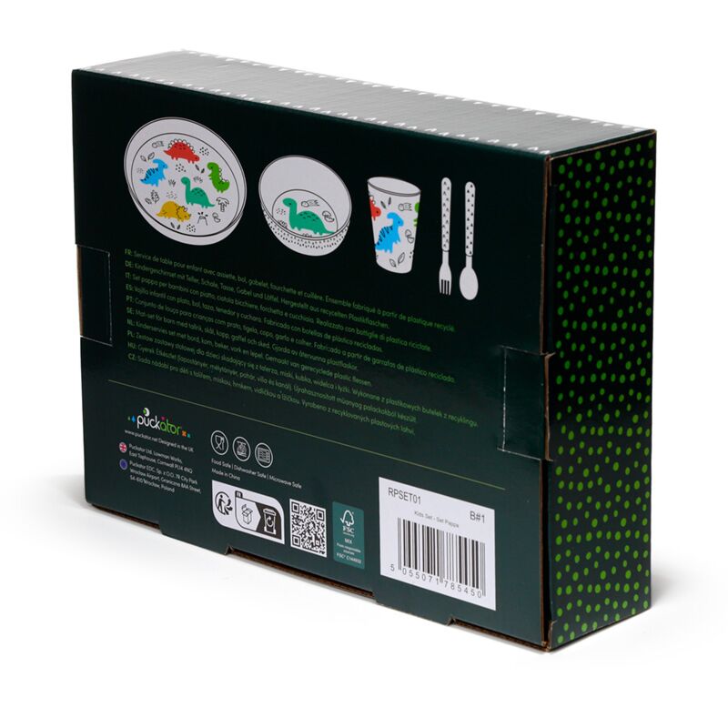 Ensemble Repas 5 pièce pour Enfant en Plastique Recyclé rPET Dinosauria - Dinosaure