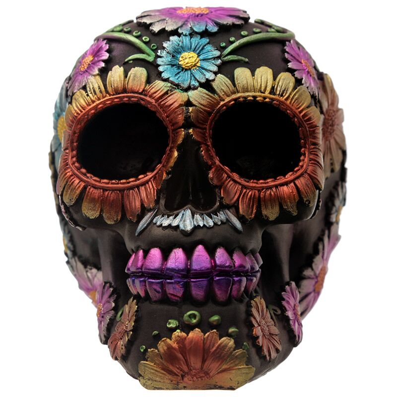Crâne de Décoration Effet Metallique Jour des Morts à Fleurs