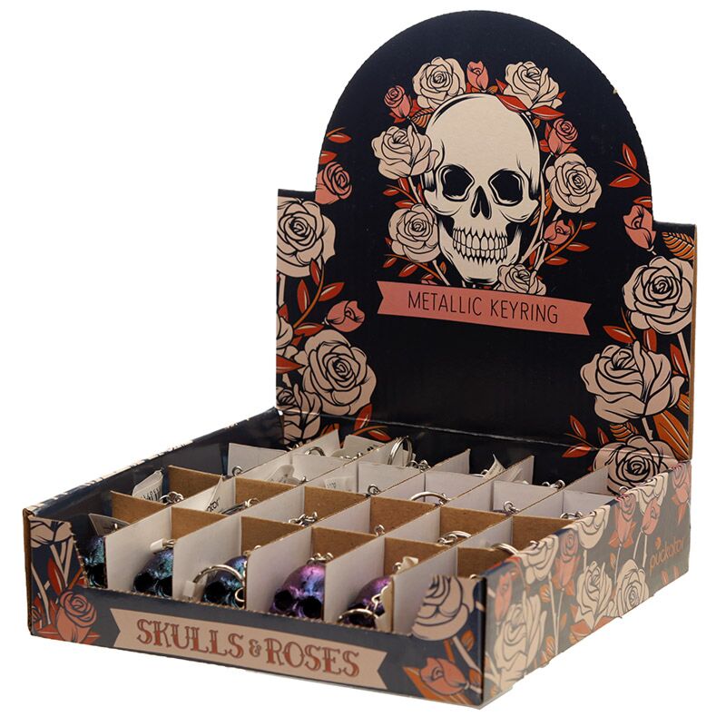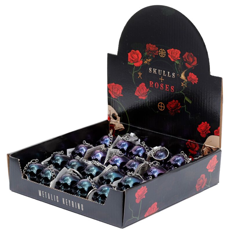 Porte-clé Skulls & Roses Effet Metallique à Couleurs Irisées