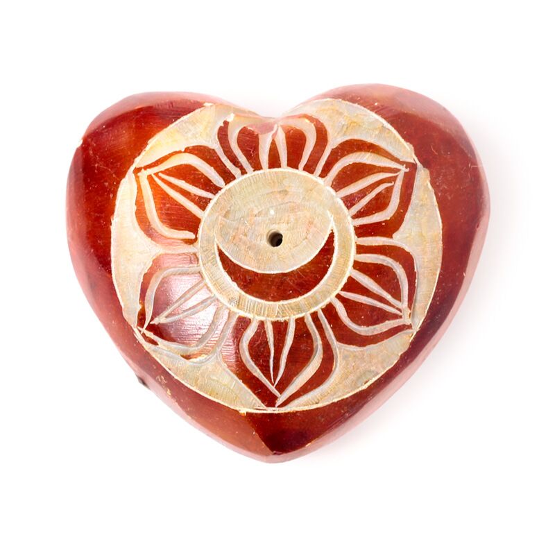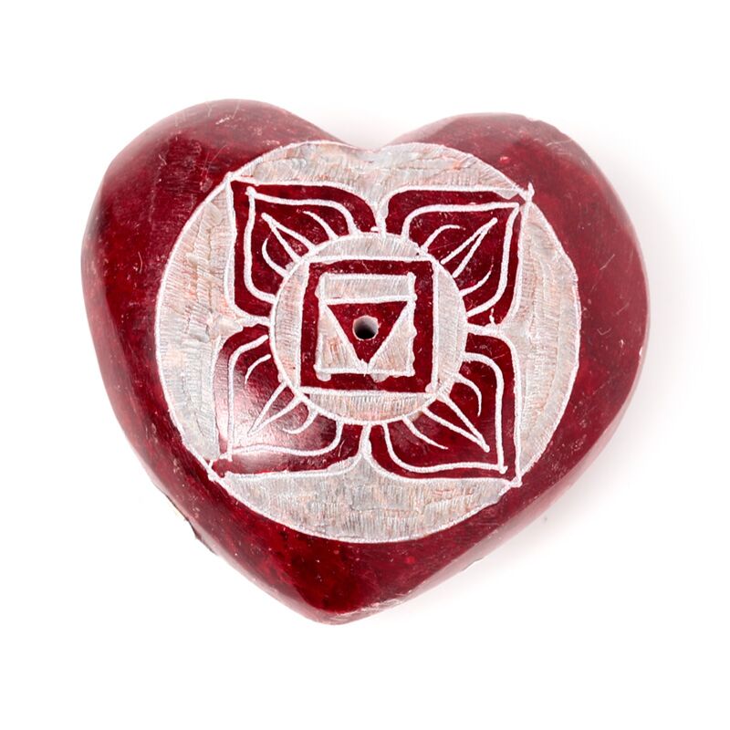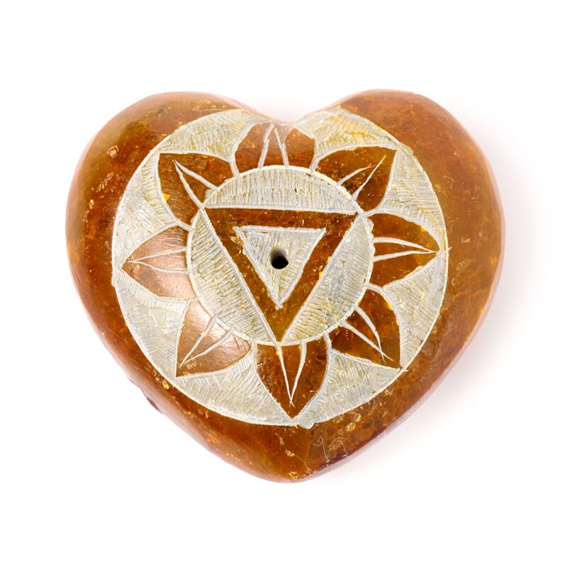 - Porte-encens Stéatite - Cœur gravé Chakra