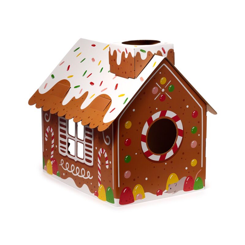 Maison pour Chat 100% Carton à Monter Soi-même - Noël Maison en Pain d'Epice