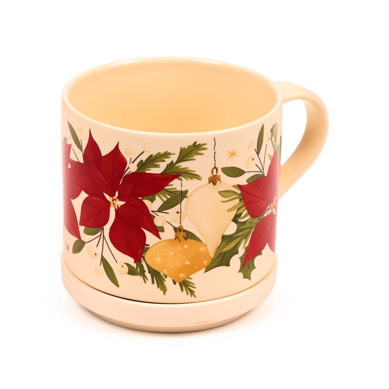 Ensemble Mug Porcelaine & Dessous de Verre - Plantes de Noël