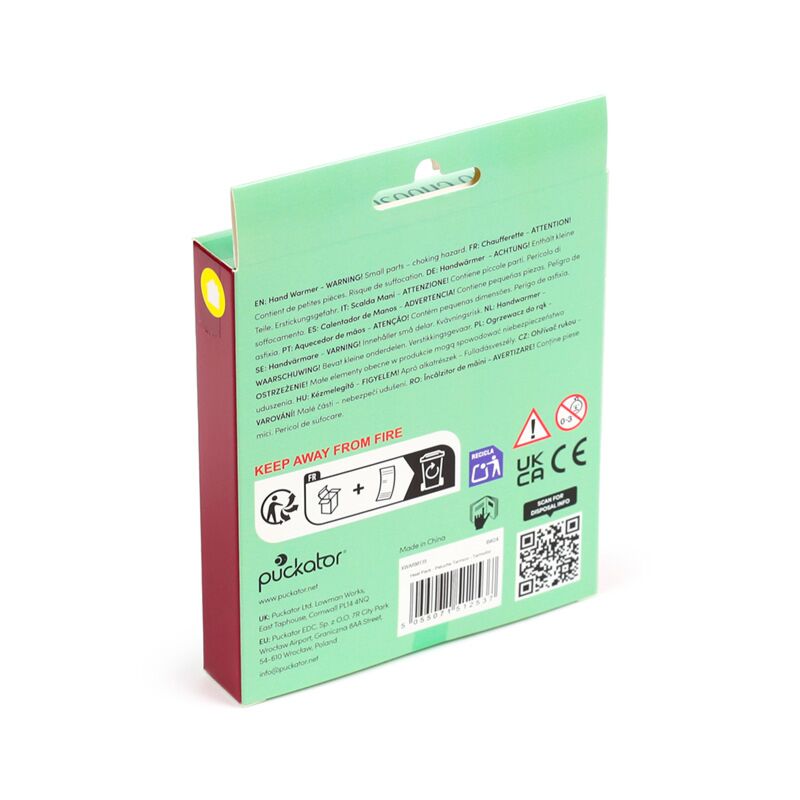 Information produit: Livré avec mode d'emploi. Pressez le disque métallique pour activer la chaufferette qui restera chaude pendant environ 30 minutes. Ce produit est réutilisable.